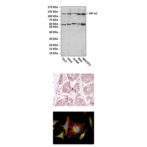 Antigen: | Raised against purified recombinant fragments of human HIF-1alpha expressed in E. Coli. |